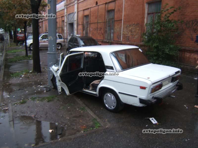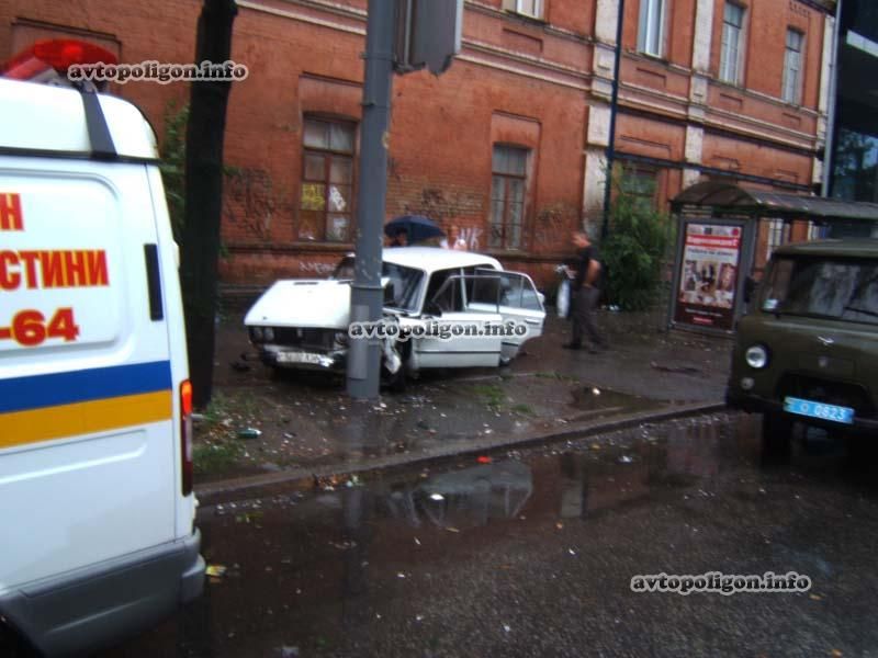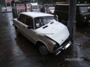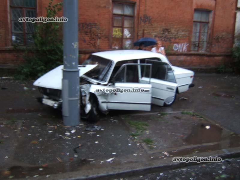Водитель (1959 г.р., киевлянин) автомобиля ВАЗ-2106 не справился с управлением, выехал на тротуар, где автомобиль врезался в электроопору.