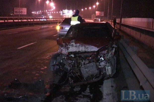 В понедельник вечером в Киеве на Южном мосту Honda Civic, двигаясь в направлении левого берега, по неизвестным причинам, врезалась в разделительный отбойник, сообщает .