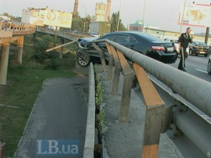 Во вторник, 2 сентября, вечером в Киеве, на Южном мосту, нетрезвый водитель автомобиля Toyota Camry, протаранив отбойник, едва не слетел с путепровода, сообщает .