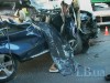 Удар был такой силы, что баварский внедорожник буквально разорвало на части, а в грузовике вырвало колесную пару. Обломки частей, отлетая, попали в проезжавший Hyundai, а покореженный внедорожник пролетел в нескольких сантиметрах от полицейских, стоявших возле своей машины.