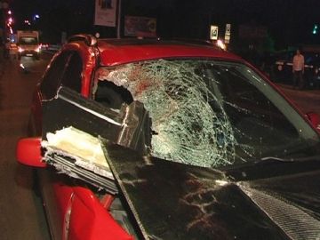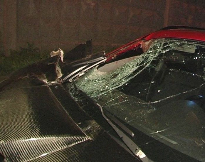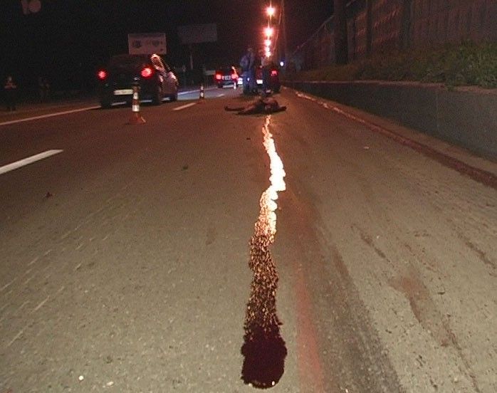 По словам свидетелей, на скорости более 150 км/час Subaru Impreza WRX сбивает одного из мужчин. От сильнейшего удара человека разрывает на части, отрывая ногу и практически лишая головы.
