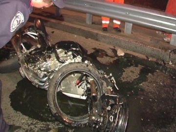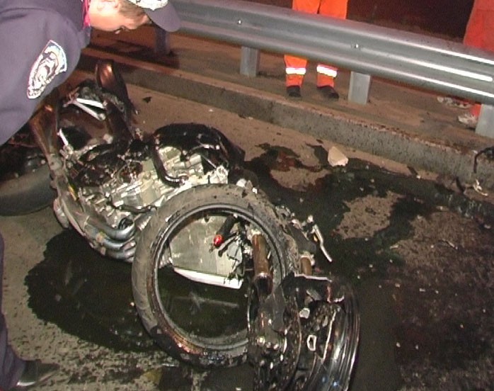 Стоит отметить, что мотоцикл ехал на бешеной скорости, поэтому удар лоб в лоб был очень сильным. Этому свидетельствует место аварии: на растояниии 100 метров друг от друга валяются обломки мотоцикла. Мотоциклист после удара пролетел еще 20 метров и упал на обочину.