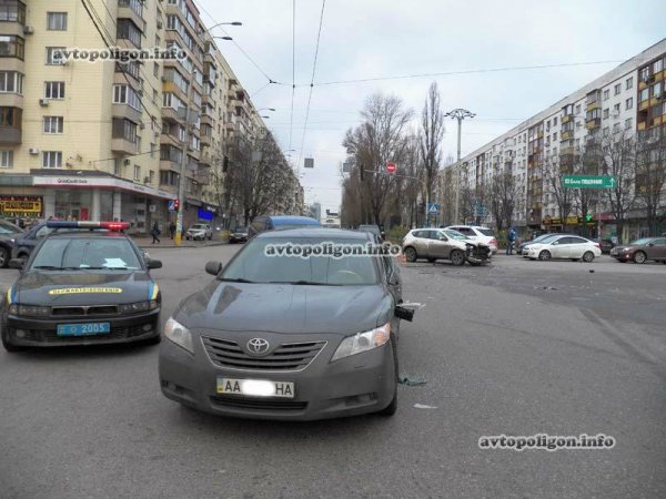 По словам водителя Toyota Camry, он двигался по бульвару Леси Украинки от Бессарабки в направлении Печерского моста, в левом ряду (как он пояснил ряд был пустой). При подъезде к перекрестку с улицами Заднепровского-Кутузова как раз загорелся "зеленый" и он продолжил движение и в этот момент произошло столкновение.