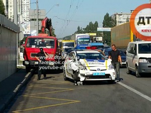 Стоит отметить, что это не первая разбитая патрульная машина. Только вчера, 7 июля, в Киеве на проспекте Воссоединения столкнулись патрульная Toyota Prius и Renault. Тогда в результате аварии никто не пострадал.