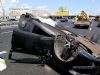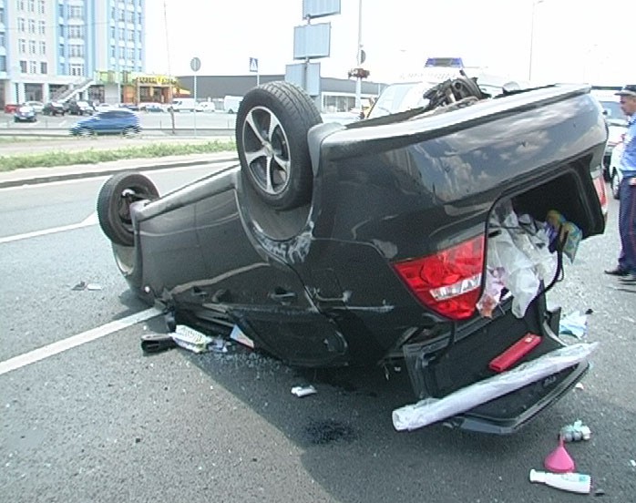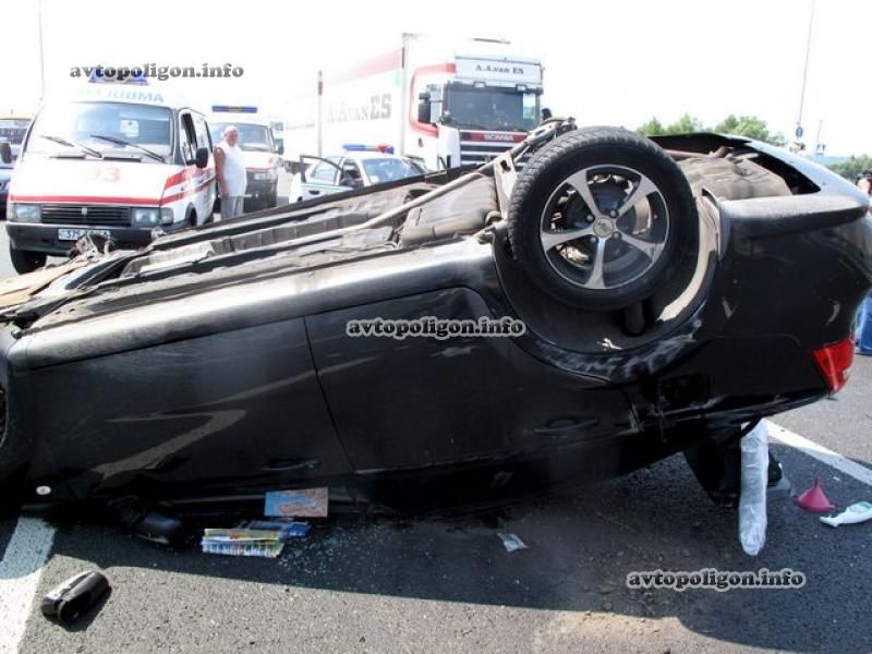 Из поврежденного бензобака опрокинутой легковушки начало вытекать горючее и учитывая жару машина лишь чудом не вспыхнула.