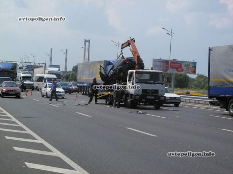 Это ДТП произошло 8 июля, приблизительно в 12:45 в г. Киев, на проспекте Бажана, недалеко от перекрестка с Днепровской набережной. Предварительно установлено, что автомобиль Chevrolet Aveo и грузовик Scania (в третьем ряду) двигались по проспекту Бажана от Южного моста в направлении Харьковской площади, сообщает .