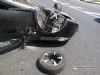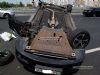 Что произошло не понятно: то ли грузовик ударил легковушку прицепом, то ли легковушка не заметила тяжеловес и попыталась перестроиться. Но "народный" автомобиль тут же стал на два колеса и перевернулся.