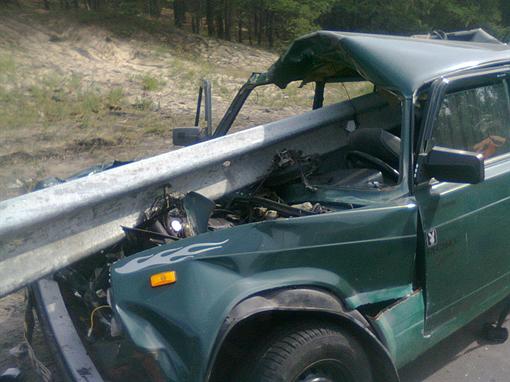 Даже видавшие вида сотрудники ГАИ были немало удивленны тем, что толстая металлическая балка отбойника, закругленная на конце, могла пройти через весь салон, от капота до багажника. Но факт остается фактом.