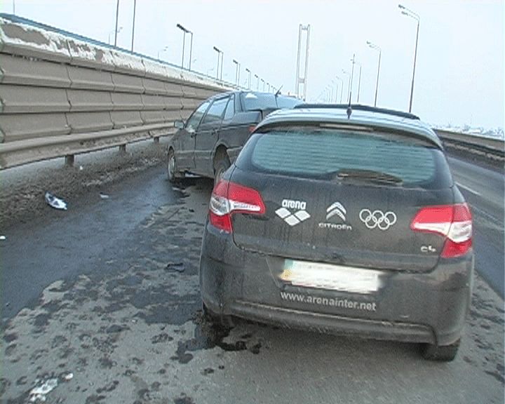 Это ДТП произошло 26 января днем. Предварительно установлено, что автомобили Honda, Volkswagen Passat, а следом Citroen C4 new двигались с правого берега на левый – в направлении Харьковской площади, сообщает .