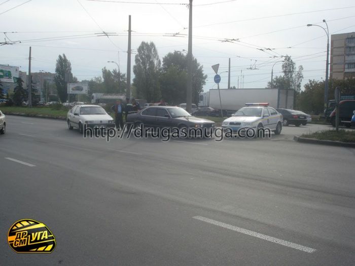 маячком и с соблюдением правил безопасности. После столкновения BMW и Volkswagen сотрудники ГАИ поинтересовались у водителей будут ли они оформлять эту аварию.