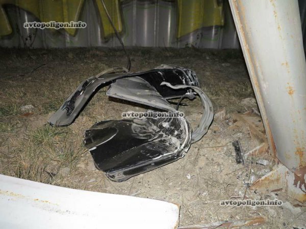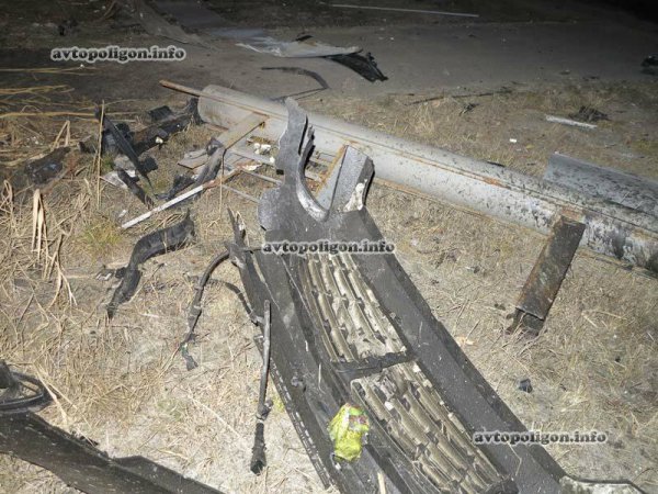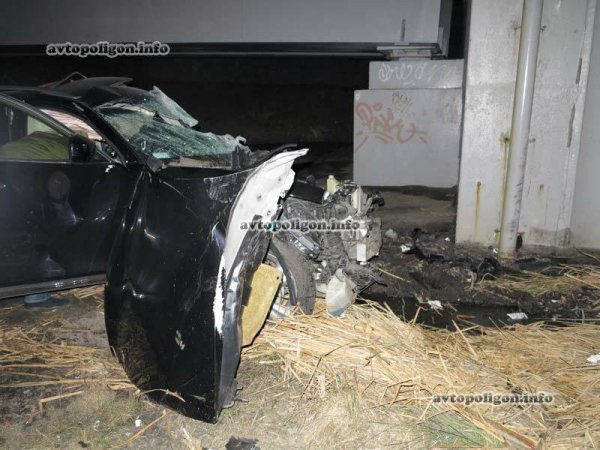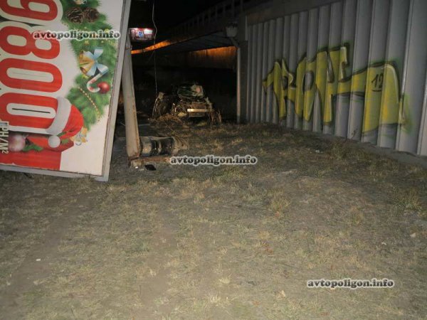 По невыясненным доподлинно причинам водитель не справилась с управлением и мощный "японец" сначала вылетел на бордюрный камень, а затем на зеленую зону, где автомобиль протаранил с минимальным перекрытием металлический столб рекламного щита. Далее кроссовер продолжил движение и остановился в зарослях высохшей травы, растущей под эстакадой. К счастью, автомобиль, точнее, то что от него осталось и сама трава не загорелись.