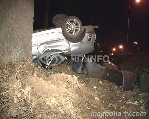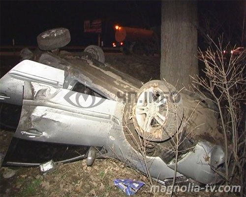 Ночью 5 апреля в Киеве на Столичном шоссе Mitsubishi протаранил отбойник и слетел в кювет. Авто остановило старое дерево, сообщает .