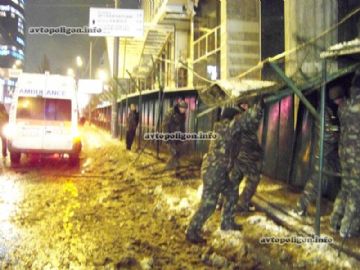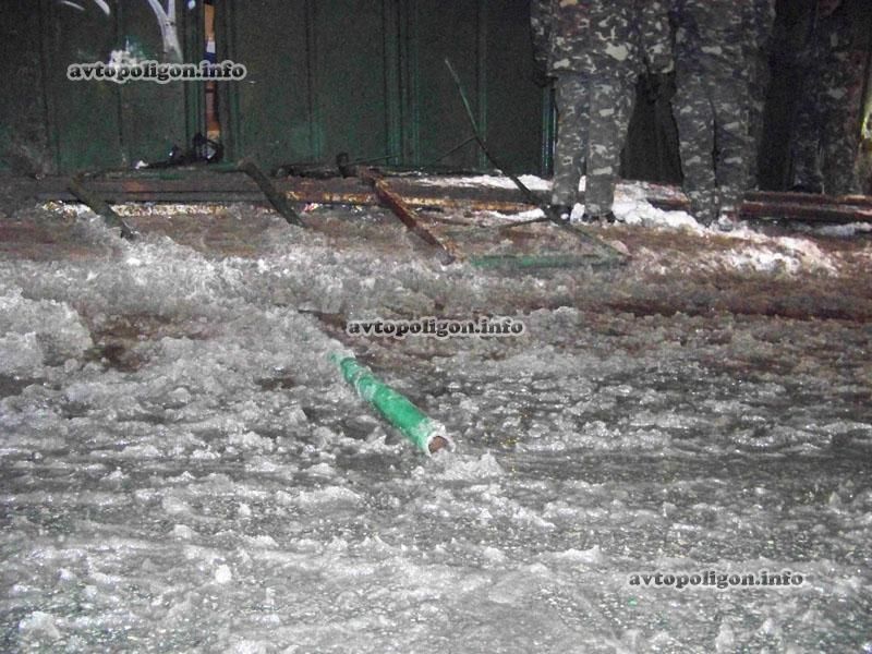 По предварительны данным, автомобиль Porsche Cayenne двигался в направлении площади Леси Украинки (вот только не понятно - откуда от Бессарабки или же с поворота – с Бассейной). В правом ряду Porsche зацепил снежную кашу и его занесло прямо на ограждение, которое поставили на время проведения строительных работ. По словам свидетелей, скорость люксового паркетника была довольно высока – он снес три секции ограждения (длиной около 8-10 метров) и скрылся в направлении площади Леси Украинки.