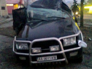 В Днепровском районе Киева сегодня утром произошло курьезное ДТП. На проспекте Освободителей, возле дома №17, на обочину вылетел джип Toyota Land Cruiser и перевернулся, сообщает .