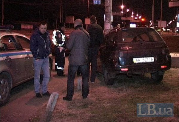Один из инспекторов бросился к водителю ВАЗа, но тот надавил на газ и, сбив инспектора, поехал дальше. Инспекторы ГАИ продолжили погоню. Через некоторое время водитель ВАЗа не справился с управлением и на перекрестке Голосеевского проспекта и улицы Васильковской на полном ходу вылетел на тротуар, сбил ограждающие столбики и врезался в осветительную опору.