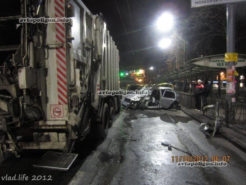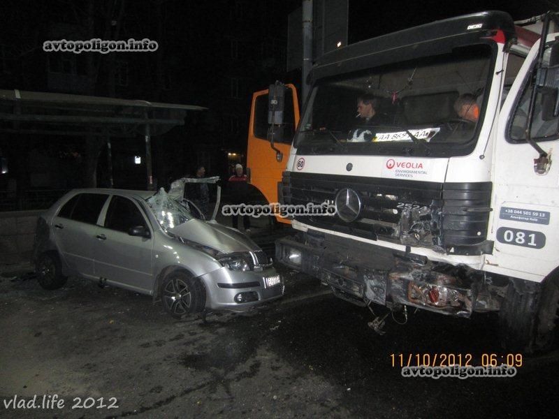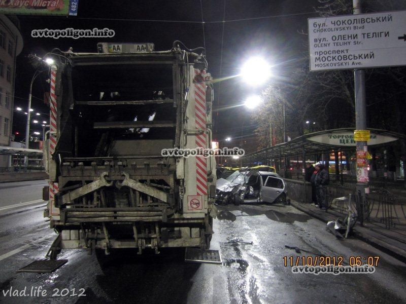 Киев: пьяный водитель на Skoda Fabia разбил 2 авто и подбил мусоровоз. (Фото)