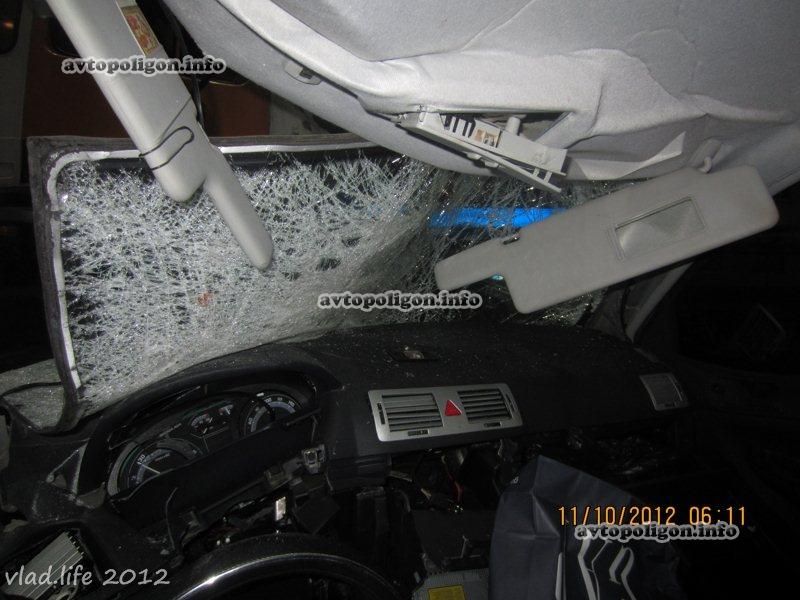 Renualt, двигавшийся в левом ряду к площади. От удара Renualt переворачивается на правый бок и отлетает в правый ряд, останавливаясь уже о бордюр. Skoda же летит дальше и врезается в музоровоз МАН, едущий к площади в среднем ряду. Останавливается неуправляемый автомобиль уже в правом ряду, разбив задние колеса о бордюр.