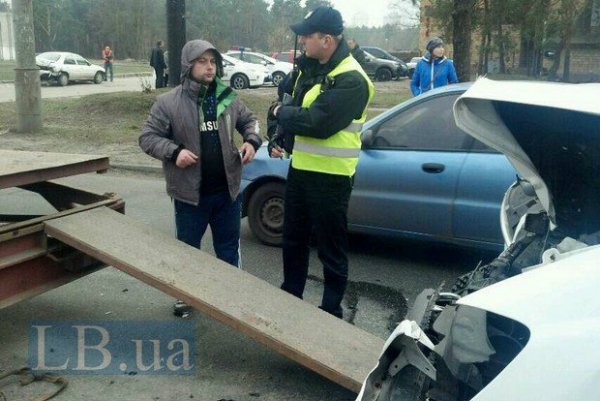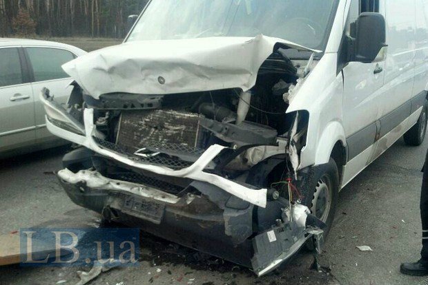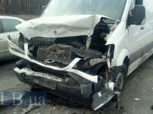 В среду в Киеве на улице Братиславской микроавтобус Мercedes Sprinter, двигаясь в направлении Броварского проспекта, на полном ходу протаранил стоявшие на светофоре автомобили Ford и Infiniti, сообщает .