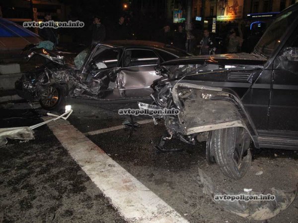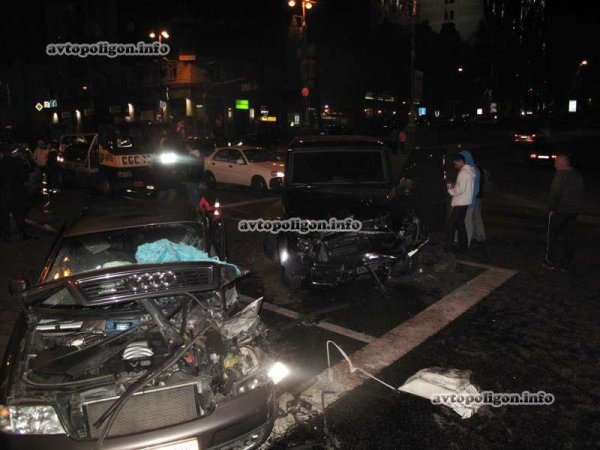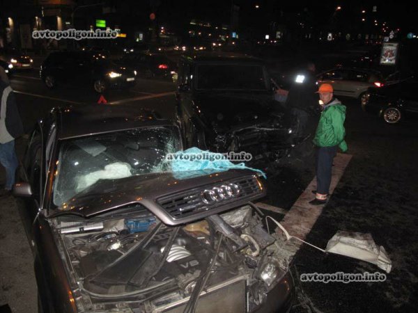 По словам водителя (1981 г.р.) Audi А6 он двигался с двумя пассажирами от Красноармейской в направлении Европейской площади как внезапно со "встречки" прилетел большой внедорожник - Mercedes-Benz G-Klasse-500, двигавшийся от Европейской площади в сторону Бессарабки, он зацепил по касательной впереди идущие Daewoo Lanos и Daewoo Nexia, а затем протаранил его машину (Audi А6).