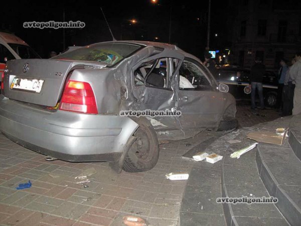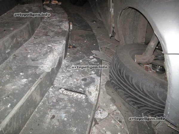 В результате Range Rover протаранил Volkswagen Bora в бок и таким образом протолкал его около 20 метров до полной остановки, от чего „немец” оказался на тротуаре и уперся в ступеньки магазина.