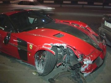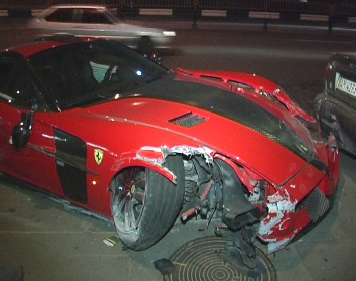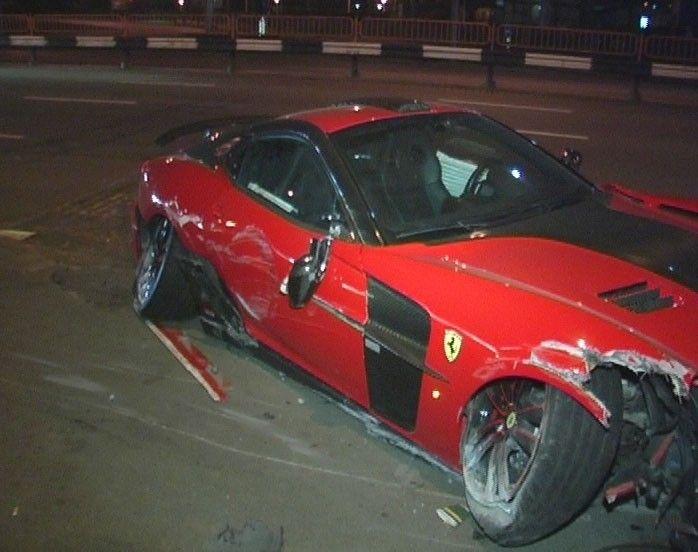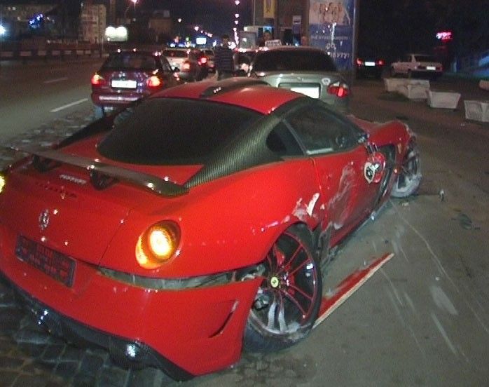 В ДТП попал эксклюзивный 2008 Ferrari 599 GTB Fiorano Mansory Stallone. И стоит этот автомобиль, точнее, стоил до того, как попал в аварию не полмиллиона долларов, а $ 250 000. Во всяком случае, именно такой автомобиль с пробегом в 20 тысяч километров продавался в Киеве.