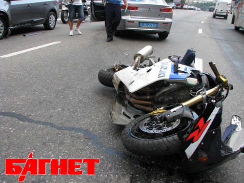 Киев: Renault устроил таран с мотоциклистом. (Фото)