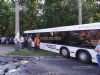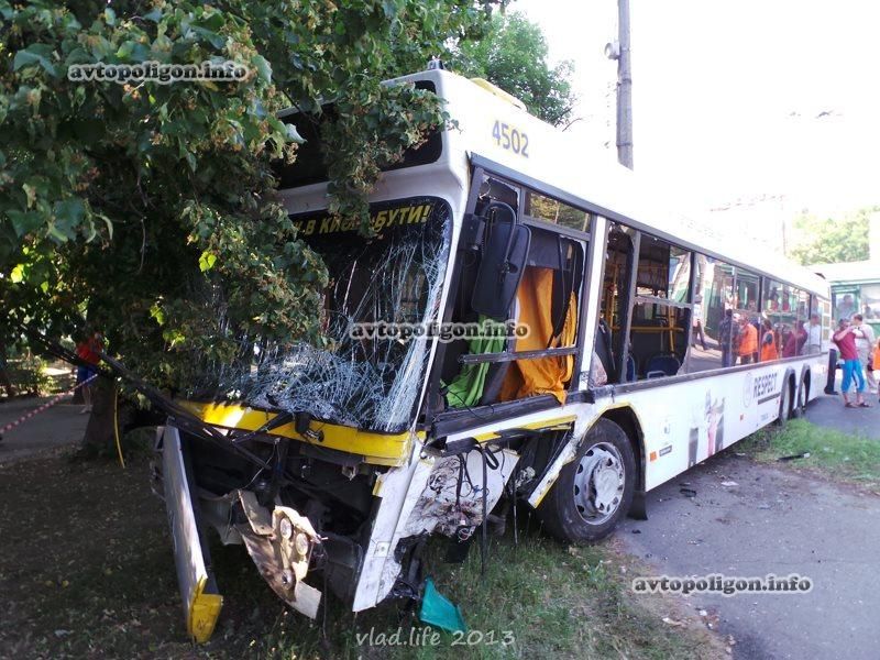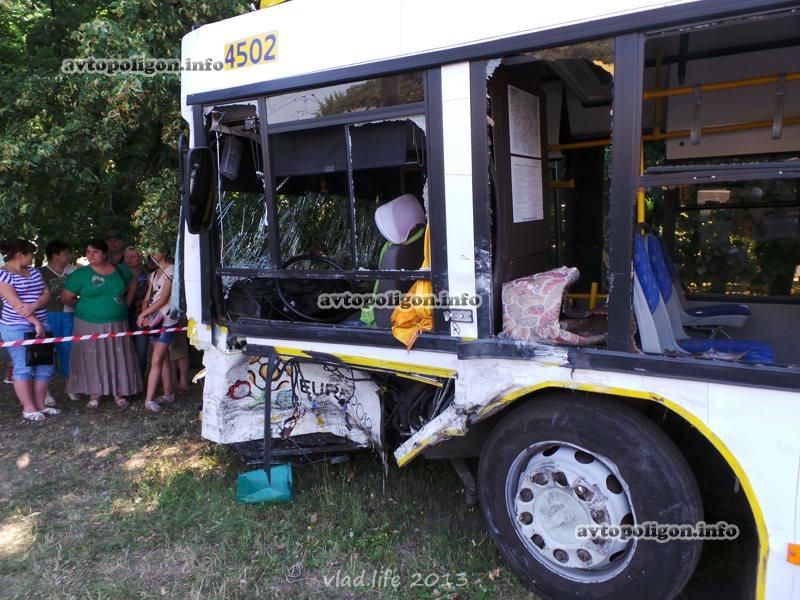 Infiniti летит дальше и через 60 метров после первого столкновения влетает в пассажирский автобус, который двигался по ул. Стеценко в направлении МРЕО. Водитель в последний момент выкручивает руль, сделав удар более касательным.
