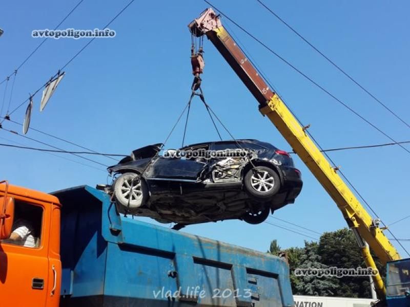 После проведения оперативно-следственных действий на месте аварии кроссовер перевернули, краном погрузили в грузовик и увезли.