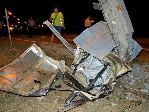 Как сообщили в пресс-службе УГАИ Киева, авария произошла около 11 часов вечера. По словам свидетелей, машина ехала по дороге в направлении Обухова и Конча-Заспы, значительно превышая скорость.