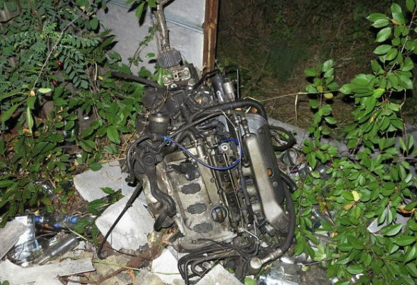 "На повороте возле бывшего пункта ГАИ автомобиль Seat Leon, не справившись с управлением, завалил столб, вывернув его из земли. После этого двигатель вылетел и полетел дальше, около 50 метров", – рассказали в ГАИ. Удар был такой силы, что мотор, пробив забор возле частного дома, застрял в огороде. А машина еще пролетела несколько метров, распадаясь на части.