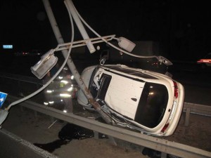 Молодая женщина-водитель (1993 г.р., киевлянка) BMW не смогла объяснить как произошло столкновение. Как бы там ни было, в механизме ДТП будут разбираться следователи. Известно только, что SsangYong Kyron врезался в отбойник, сняв его часть до стружки, после чего смял несколько метров металлической ленты и врезался водительской стороной в столб.