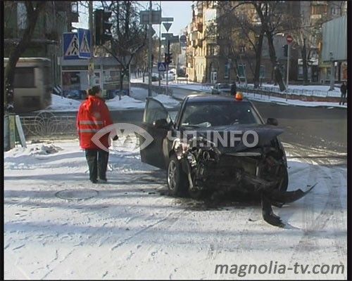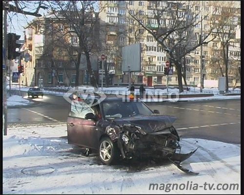 Киев. Столичную дорогу не поделили две иномарки: Hyundai и Nissan. (Фото)