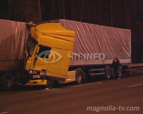 Травмировался водитель DAF. Renault двигался по Бориспольской трассе в направлении г. Киева в крайней правой полосе и вдруг у него на огромной скорости влетел DAF.