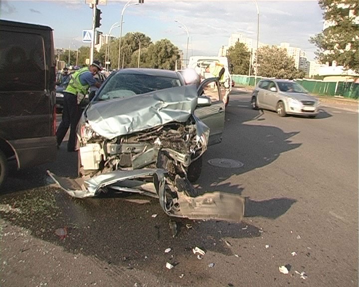 Тройное ДТП произошло в Киеве, на улице Здолбуновского. Водитель Mitsubishi Lancer выполнял маневр разворота и пропускал встречный транспорт. Когда Mitsubishi Lancer начал поворачивать, его сзади, в левый бок ударил Chevrolet. От удара Mitsubishi Lancer развернуло на 360 градусов и отбросило на Ford, который ехал в первой полосе., сообщает .