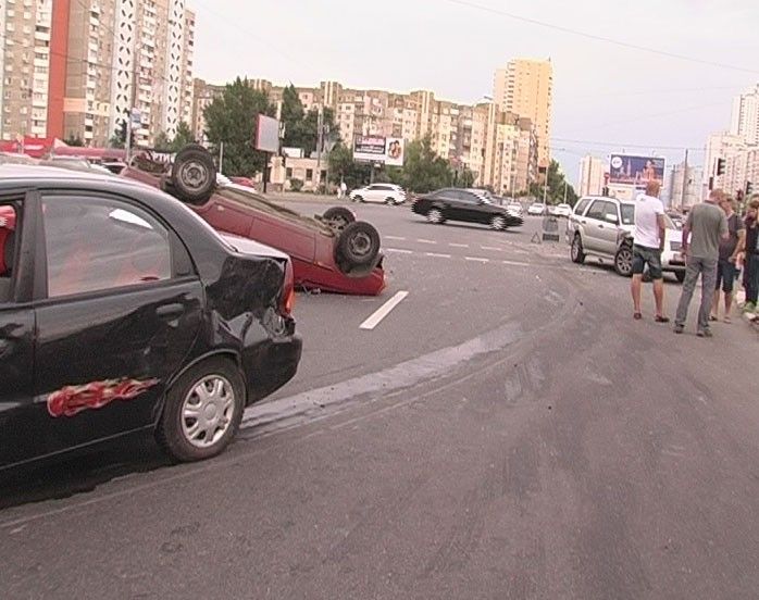 На перекрестке столичных улиц Григоренка и Анны Ахматовой столкнулись сразу три авто - Subaru Forester, Daewoo Sens и «Таврия». В дорожно-транспортном происшествии пострадали два человека, сообщает .