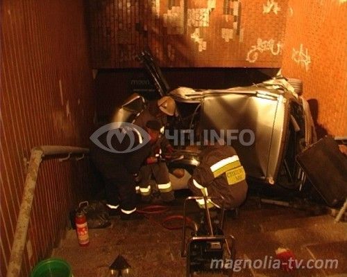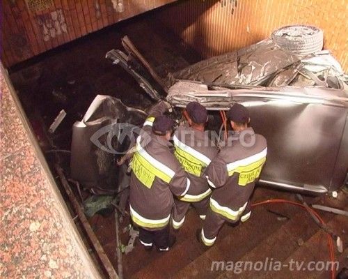 Водитель автомобиля Subaru Forester не удержал свой автомобиль в повороте и выехал на тротуар, после чего влетел в подземный переход.