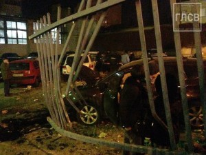 28 января, в 21:50, в столице произошла авария. В Голосеевском районе Киева автомобиль врезался в забор возле офисного центра. Пассажиры чудом остались живы, сообщает .