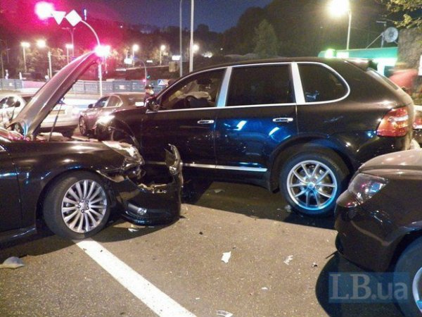 Автомобиль Subaru, двигаясь от моста имени Патона, по неизвестным причинам, выехал на полосу встречного движения, где протаранил двигавшиеся в левом ряду навстречу Volkswagen Passat, Porsche Cayenne и Geely Emgrand. От удара Passat отбросило на двигавшуюся правее него Mazda, а Porsche - на соседний Hyundai.