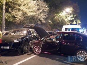 Во вторник, 13 октября, вечером в Киеве на улице Лаврской произошло столкновение шести автомобилей, сообщает .