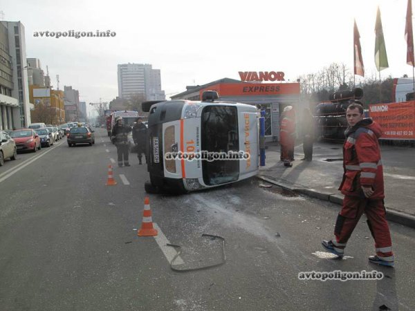 Столкновения избежать не удалось, от удара в крыло "скорая" опрокинулась на бок и проехала, точнее, проскользила так еще около 20 метров.