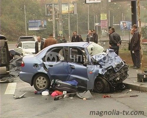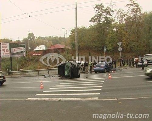 Дорогу не поделили Daewoo Lanos и Ford Mustang. По предварительным данным, Mustang двигался в направлении Соломенской площади, Daewoo Lanos - навстречу ему. В какой-то момент Mustang, при попытке развернуться через двойную осевую, выехал на встречную и оказался перед носом у Daewoo. Времени на то, чтобы среагировать на ситуацию, у водителя Daewoo практически не было. Мужчина попытался притормозить, но из-за скользкой от дождя дороги ему это не удалось. Удар Daewoo пришелся прямо в бок Mustang.