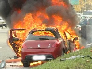 В пятницу, 18 октября, на Набережном шоссе пылал автомобиль Peugeot. Как рассказали в столичном ГосЧс, машина, ехавшая в сторону левого берега на высокой скорости, врезалась в столб на обочине и загорелась, сообщает .