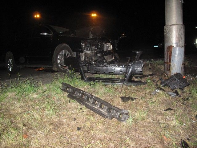 Volkswagen Passat, который двигался в сторону центра города на полному ходу протаранил электроопору.