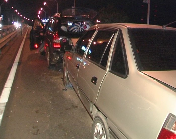 28 августа, вечером, на Южном мосту в направлении движения на левый берег автомобиль Daewoo Nexia протаранил легковой автомобиль Hyundai. За рулем Hyundai была женщина, сообщает .