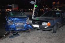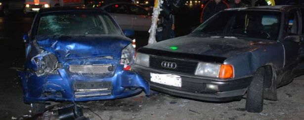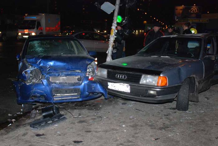 Вчера, в 15 часов 40 минут, в Киеве на перекрестке улиц Харьковское шоссе - Кунанбаева водитель автомобиля Chevrolet Aveo при выполнении обгона не удостоверился в безопасности маневра, выехал на полосу встречного движения, где допустил столкновение с автомобилем Audi 100.