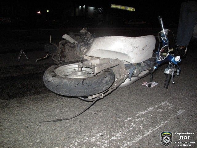 ДТП произошло 20 августа, приблизительно в 01:30, в г. Киев на перекрестке улиц Урицкого-Стадионной. Тяжелая машина буквально раздавила мопед. 17-летний водитель скутера умер в карете скорой помощи по дороге в больницу, его 16-летний товарищ угодил в реанимацию.