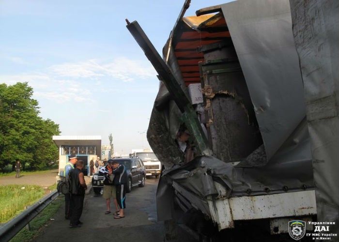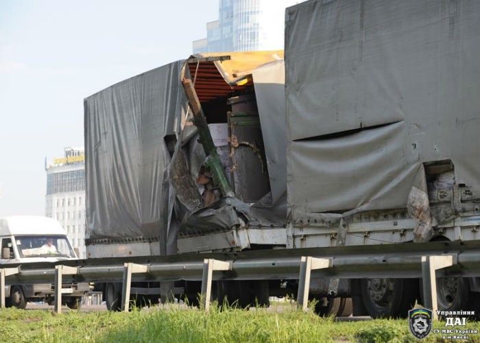 Это ДТП произошло 6 мая, рано утром - приблизительно в 05:40 в г. Киев, на Харьковской площади. Предварительно установлено, что грузовик ДАФ с полуприцепом регистрации республики Молдова, везший около 20 тонн вина двигался от проспекта Бажана в направлении Бориспольского шоссе, сообщает .