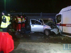 По словам очевидцев, на части дороги, где проводились строительные работы, автомобиль ZAZ выехал на встречную полосу и лоб в лоб протаранил "скорую".
