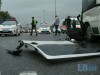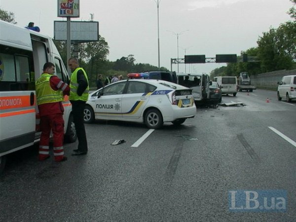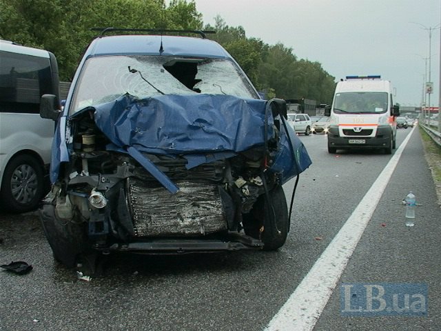 Как рассказали очевидцы, сначала на дороге столкнулись две машины. Микроавтобус Opel Vivaro, двигаясь в направлении Киева, "догнал" легковушку Mazda. Водители выставили знак аварийной остановки и ждали возле своих машин патруль полиции для оформления.