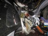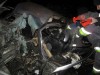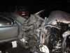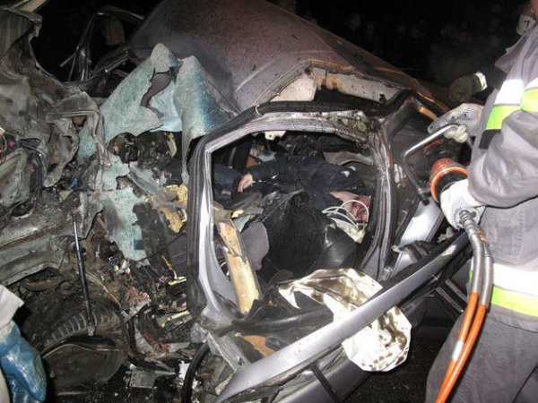 Прибыв на место, спасатели увидели ужасную картину - в результате лобового столкновения автомобилей Volkswagen и Nissan передние части машин перемешались настолько, что нельзя было определить, чьи детали где находятся.